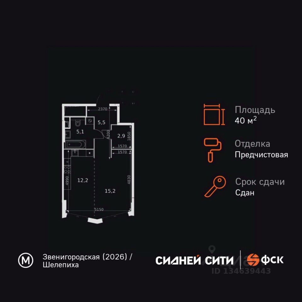 Продаётся квартира-студия номер 45 общей площадью 40.9 кв.м. на 9-м этаже 26 этажного здания. Предчистовая отделка. Цена с учётом скидки.