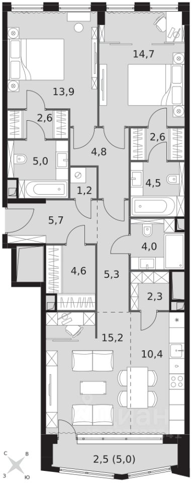 - Мастер-зона с санузлом и гардеробной. Всё для вашего комфорта и удобства, включая личный санузел и гардероб.