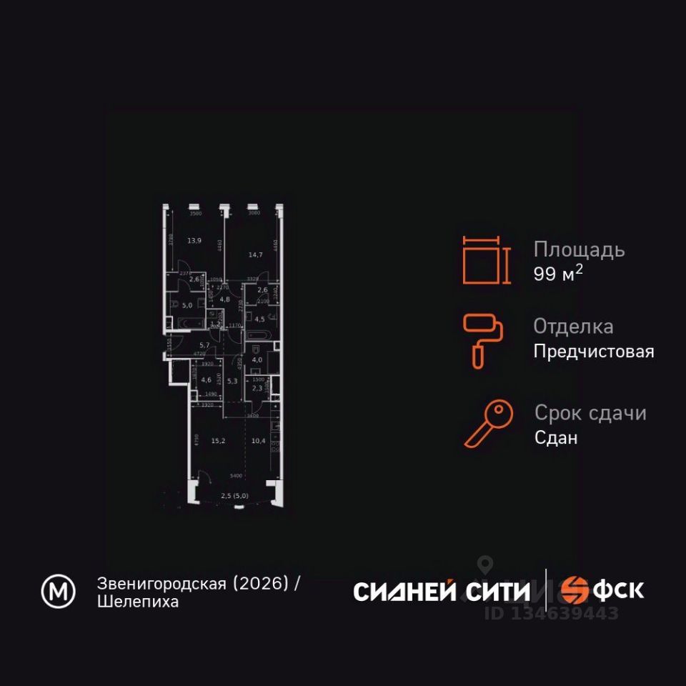 Продаётся 3-к квартира номер 56 общей площадью 99.3 кв.м. на 11-м этаже 26 этажного здания. Предчистовая отделка. Цена с учётом скидки.