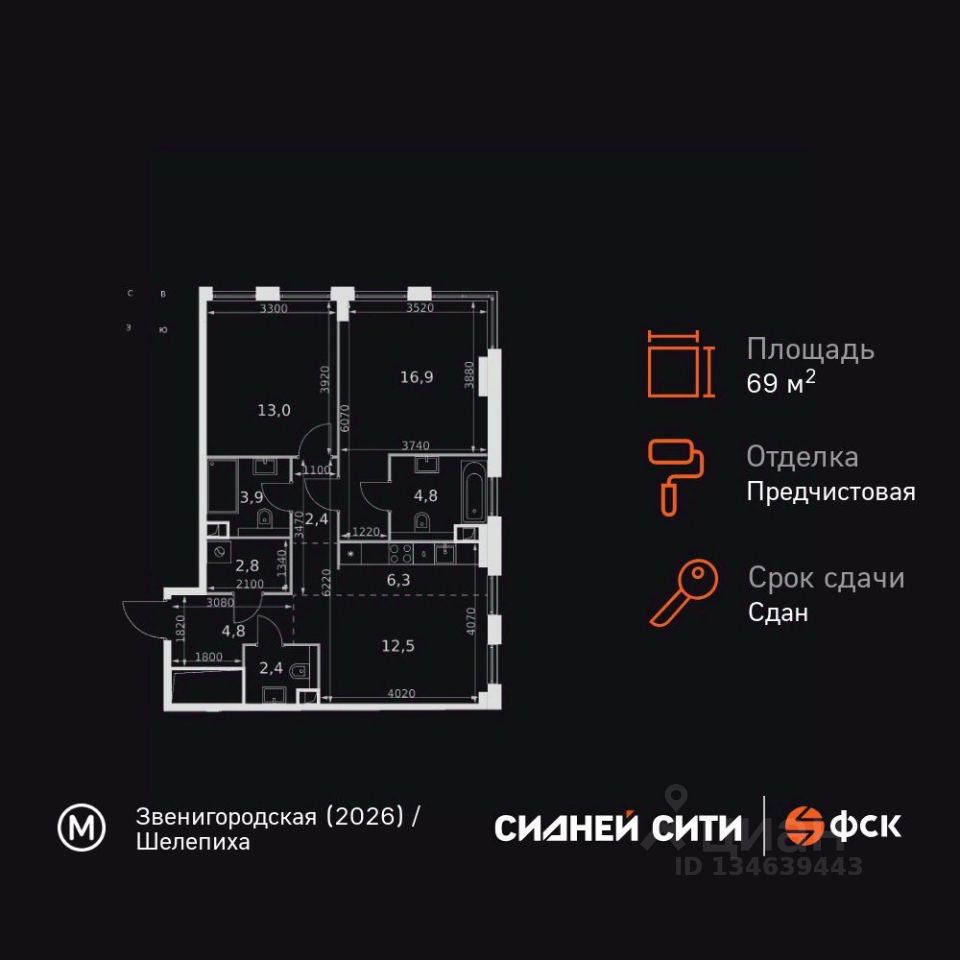 Продаётся 2-к квартира номер 203 общей площадью 69.8 кв.м. на 11-м этаже 26 этажного здания. Предчистовая отделка. Цена с учётом скидки.