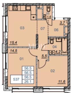 Площадь: 56,5 кв.м. - оптимальное пространство для полноценной однокомнатной или двухкомнатной квартиры (в зависимости от планировочного решения). Идеально для постоянного проживания или статусной аренды.