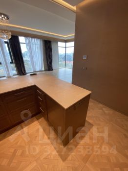 Кухня-гостиная впечатляет своими размерами и станет идеальным местом для семейных обедов и встреч с друзьями. В квартире два совмещенных санузла и два балкона с видом на Сити и Москва-реку.