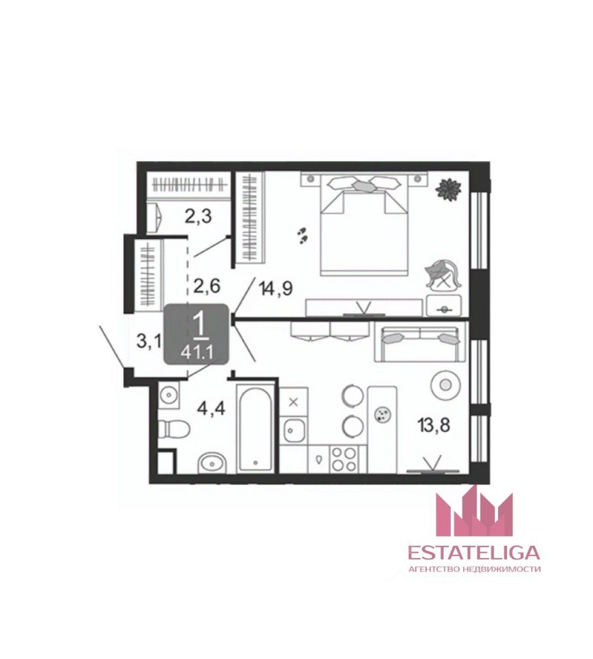 Квартира обладает продуманной планировкой: отдельная кухонная зона площадью 13,8 м² и просторная жилая комната 14,9 м². Большая площадь остекления обеспечивает прекрасное естественное освещение и открывает вид на улицу. На этаже расположены пассажирский и грузовой лифты, что гарантирует удобство. Дом является частью второй очереди комплекса, сдача которого запланирована на 2026 год, — это шанс приобрести объект доме с современными стандартами качества.
