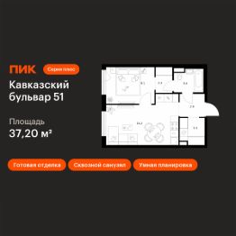 Продаётся 1-комн. квартира площадью 37,2 кв.м на 22 этаже 32 этажного дома (Корпус 3.6, Секция 3) проекта ПИК Кавказский бульвар 51. Светлый просторный подъезд на уровне земли, функциональная планировка, большие окна, c отделкой.