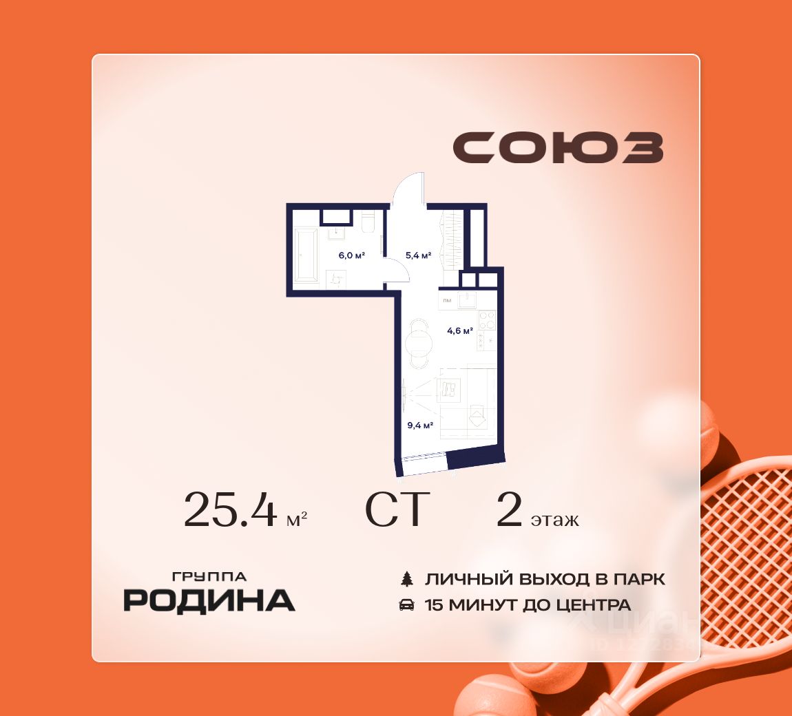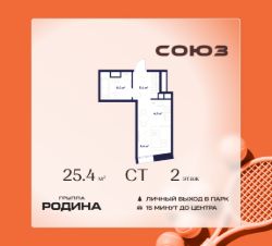 Продаётся квартира-студия площадью 25.4 м² на 2 этаже в Жилом Комплексе "Союз".