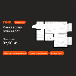 Продаётся 1-комн. квартира площадью 32,9 кв.м на 22 этаже 24 этажного дома (Корпус 3.5, Секция 2) проекта ПИК Кавказский бульвар 51. Светлый просторный подъезд на уровне земли, функциональная планировка, большие окна, предчистовая отделка.