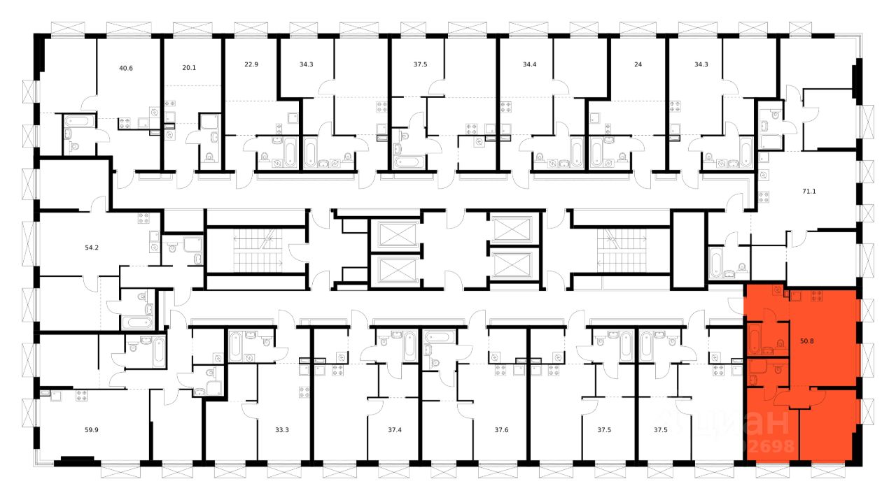 Продаётся 2-комн. квартира площадью 50,8 кв.м на 13 этаже 30 этажного дома (Корпус 1.3, Секция 3) проекта ПИК 2-й Иртышский. Светлый просторный подъезд на уровне земли, функциональная планировка, большие окна, c отделкой.