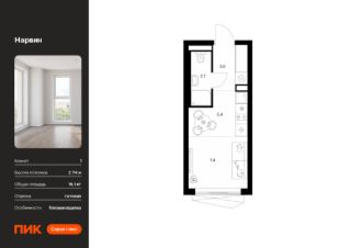 Новостройка! Продается 1-комн. кв-ра площадью 19,1 кв.м, (Корпус 1.3, Секция 3) 15 этаж 38-этажного дома в Нарвин от ПИК. Новый проект ПИК Серии плюс "Нарвин" возводится в Головинском районе Москвы.