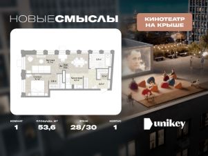 В жилом комплексе, расположенном по соседству с ландшафтным парком "Южное Бутово", продается 1-комнатная квартира площадью 53.60 кв. м. без отделки. Квартира расположена на 28 этаже 1 корпуса в жилом квартале комфорт-класса "Новые Смыслы" (ГК Unikey/Юникей).