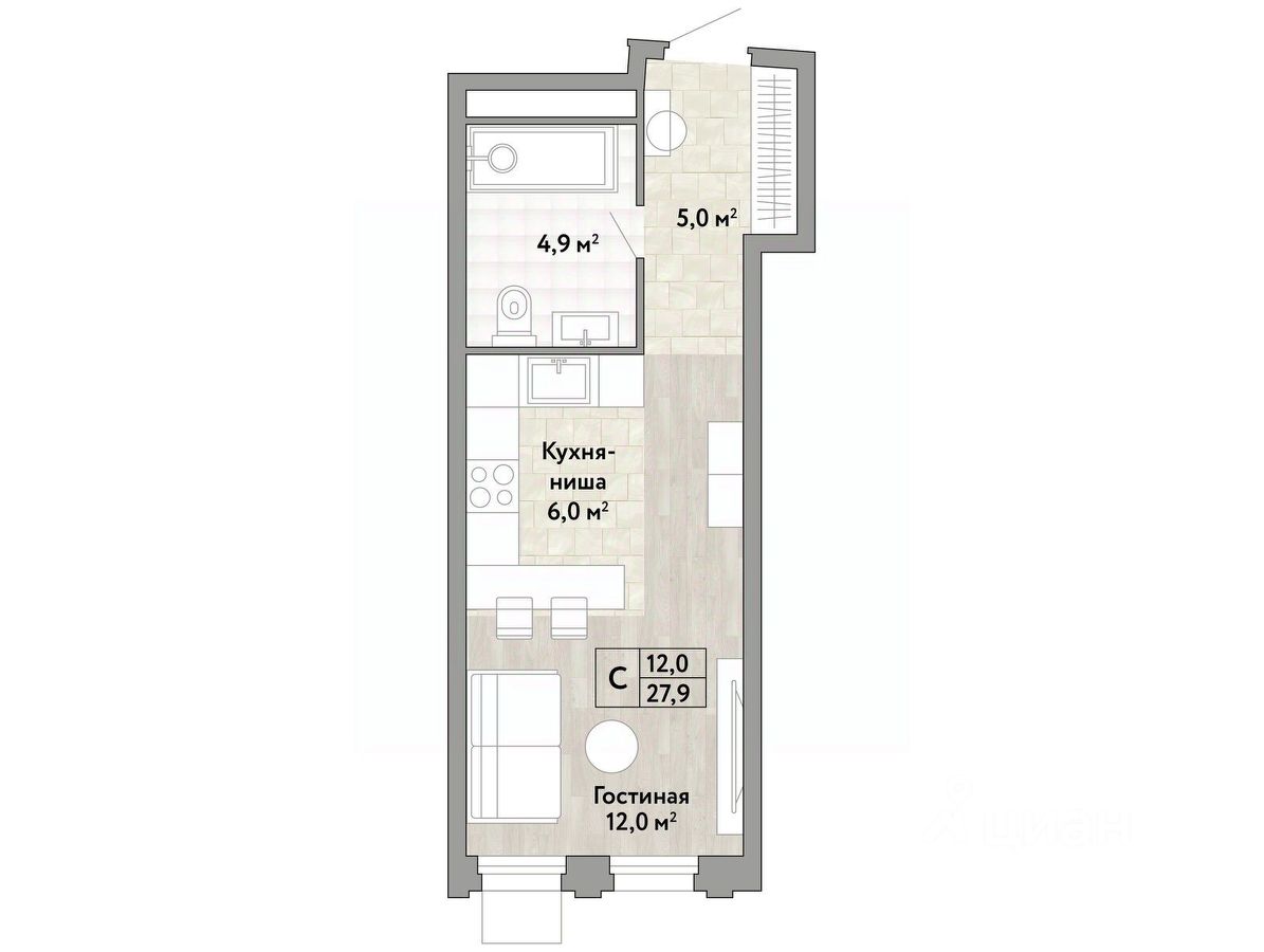 В жилом комплексе, расположенном по соседству с ландшафтным парком "Южное Бутово", продается студия площадью 27.90 кв. м. без отделки. Квартира расположена на 28 этаже 1 корпуса в жилом квартале комфорт-класса "Новые Смыслы" (ГК Unikey/Юникей).