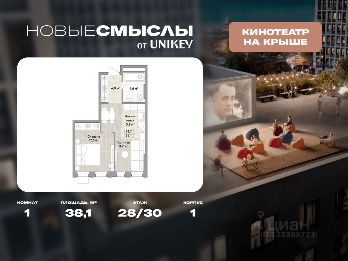 В жилом комплексе, расположенном по соседству с ландшафтным парком "Южное Бутово", продается 1-комнатная квартира площадью 38.10 кв. м. без отделки. Квартира расположена на 28 этаже 1 корпуса в жилом квартале комфорт-класса "Новые Смыслы" (ГК Unikey/Юникей).