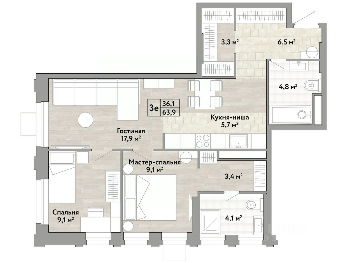 - Авторские планировки с потолками в 3 метра, просторными кухнями-гостиными и мастер-спальнями.