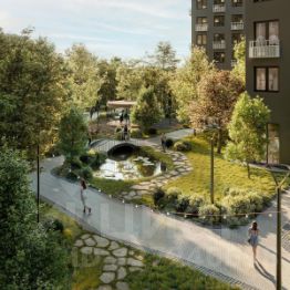 Чтобы отдохнуть от суеты города, достаточно выйти во двор: здесь раскинулся настоящий лес с живописными пейзажами. В тени деревьев жителей ждут пруд с мостиком и беседкой на берегу, тихие прогулочные аллеи, спортивная площадка и зоны для занятий йогой и бадминтоном на свежем воздухе.