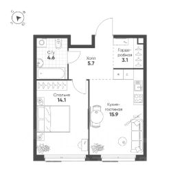 Продается 1-к квартира без отделки в ЖК "Шагал".