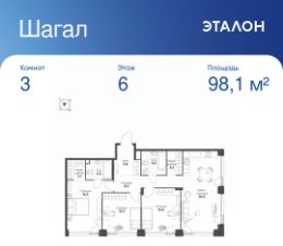 Общая площадь квартиры — 98.1 кв. м, этаж 6 из 13.