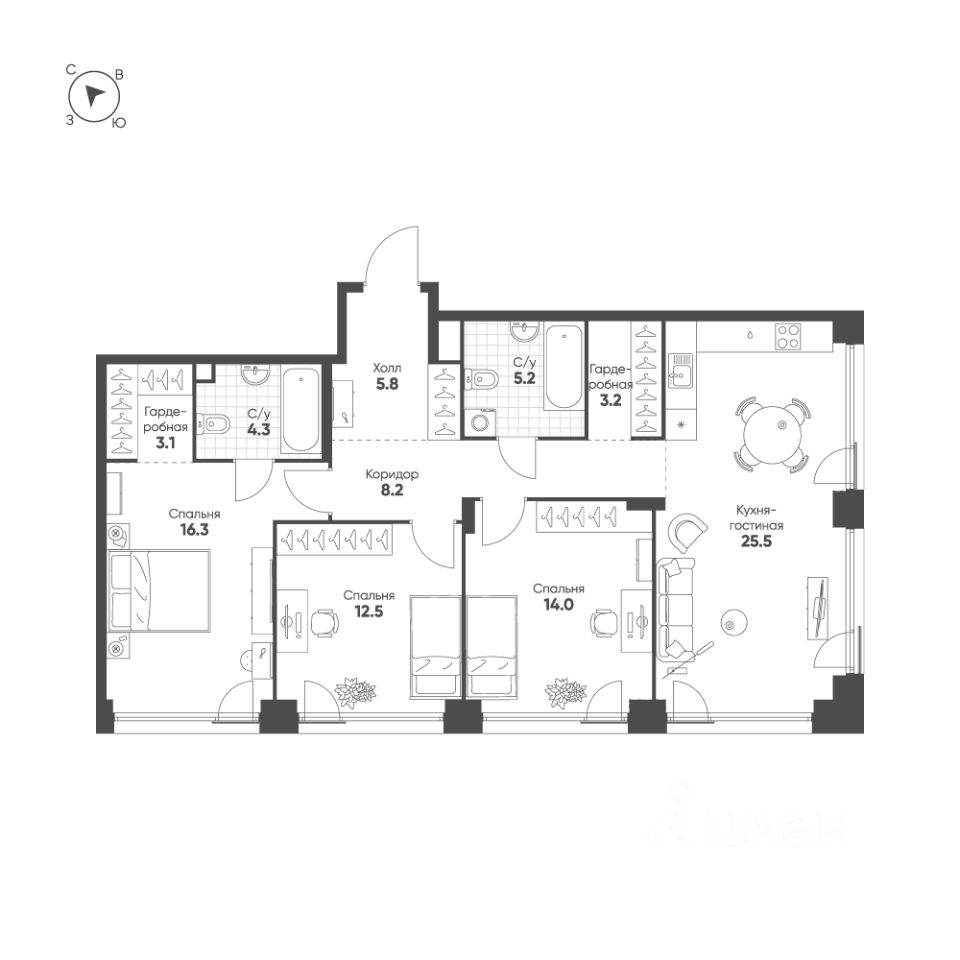 Продается 3-к квартира без отделки в ЖК "Шагал".