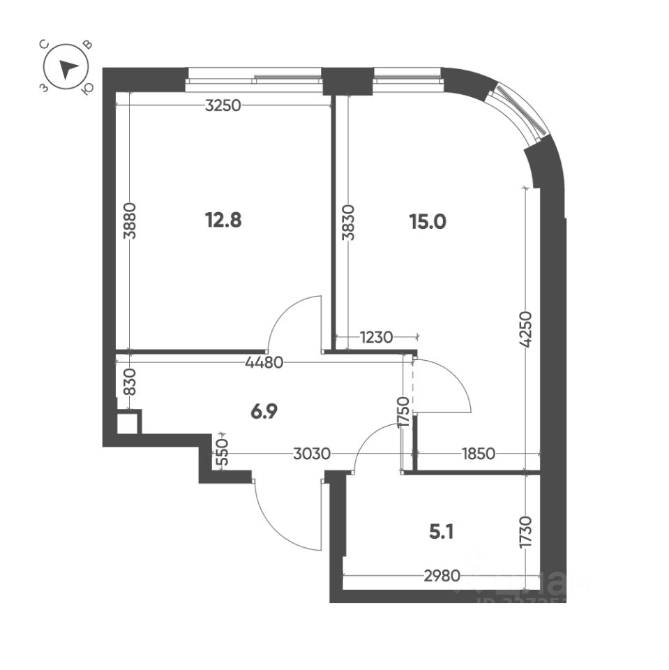 Общая площадь квартиры — 39.8 кв. м, этаж 5 из 26.