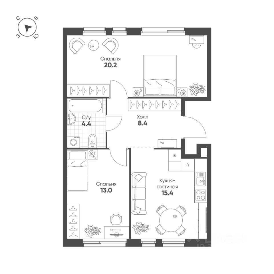 Продается 2-к квартира без отделки в ЖК "Шагал".