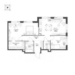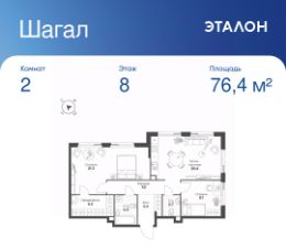 Общая площадь квартиры — 76.4 кв. м, этаж 8 из 14.