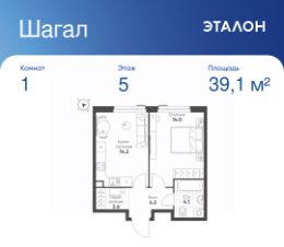 Общая площадь квартиры — 39.1 кв. м, этаж 5 из 8.