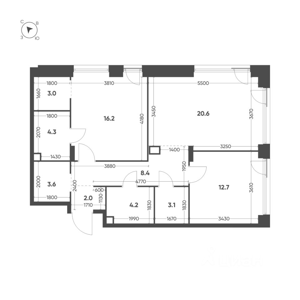Продается 2-к квартира без отделки в ЖК "Шагал".
