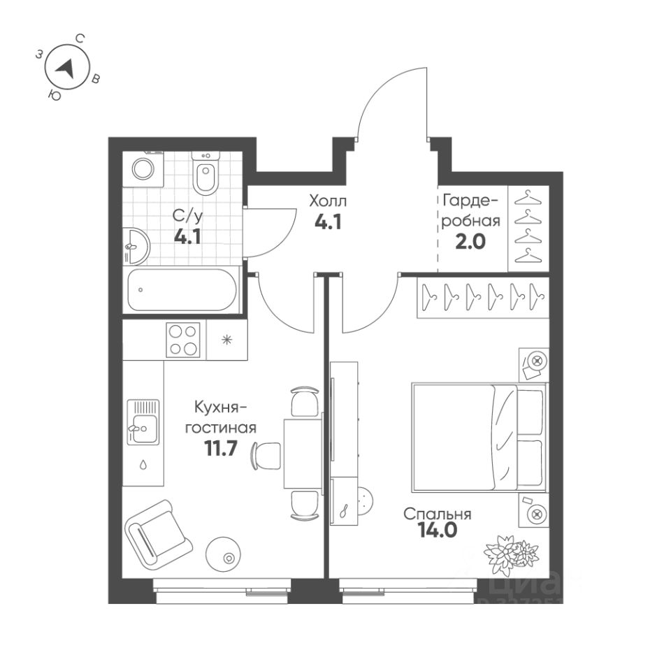 Продается 1-к квартира без отделки в ЖК "Шагал".