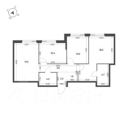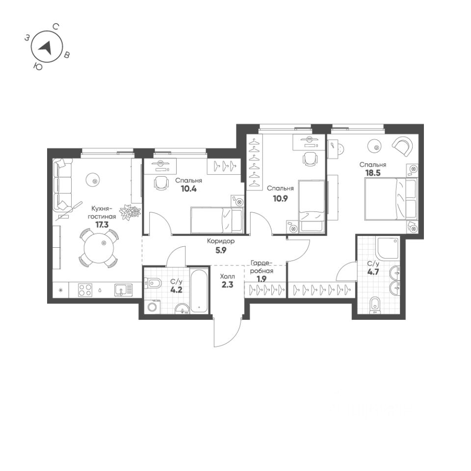 Продается 3-к квартира без отделки в ЖК "Шагал".