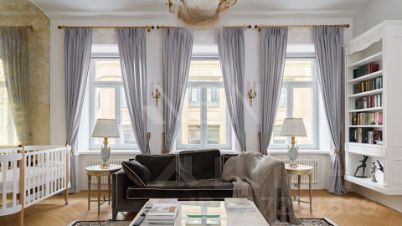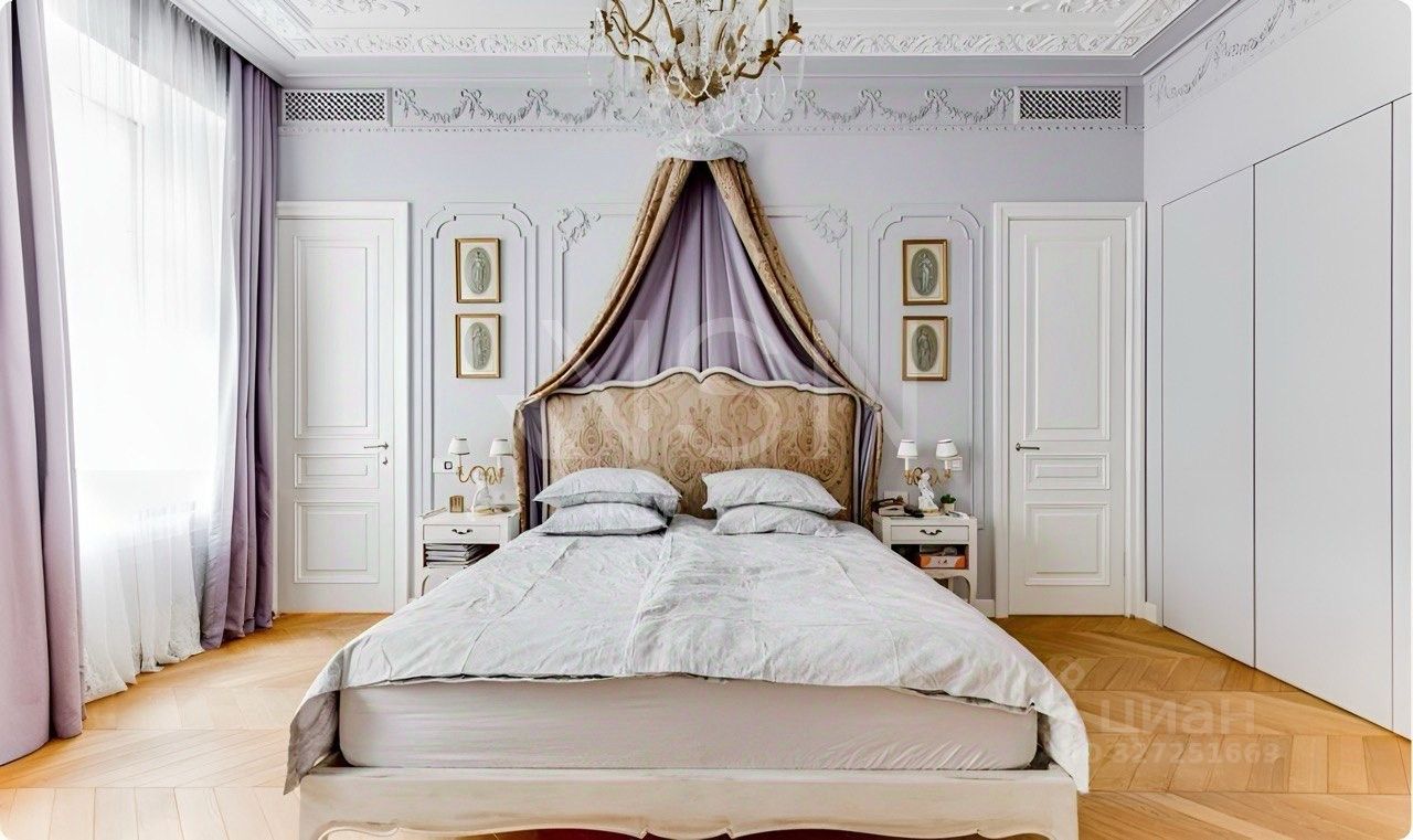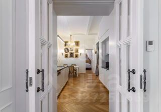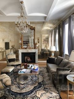 - Светлый классический интерьер с лепниной, предметами искусства и антиквариатом.