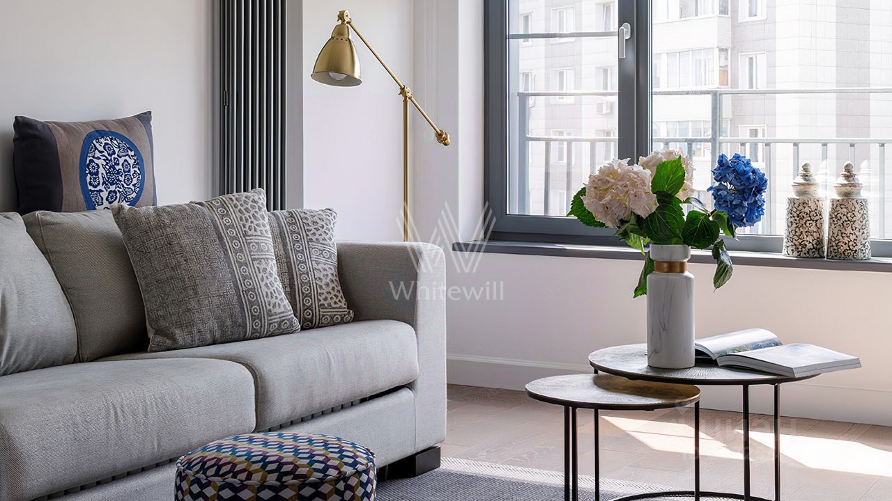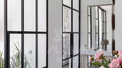 Квартира с одной спальней в комплексе бизнес-класса "Level Кутузовский". Квартира общей площадью 51 м² в ЕГРН 48кв.м расположена на шестом этаже. Выполнен современный ремонт по авторскому дизайн-проекту с зонированием пространства стеклянными дверьми-перегородками во французском стиле, изготовленными на заказ. Благодаря большим окнам и высоким потолкам квартира наполнена естественным светом.