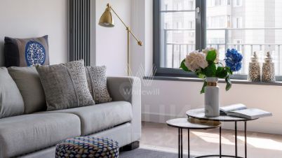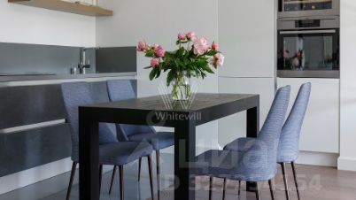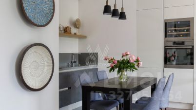 Спланирована кухня-столовая, гостиная, спальня с выходом на балкон, совмещённый санузел с ванной, прихожая с гардеробной. Квартира полностью меблирована и укомплектована бытовой техникой Liebherr, санузел оснащен сантехникой Villeroy&Boch. Окна выходят на тихую улицу.