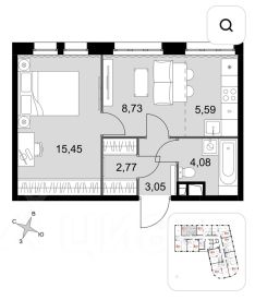 Кухня-гостиная и спальня.