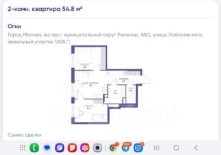 Квартира, площадью 54,8 кв.м, расположена на втором этаже(второй этаж это уровень 4-ого этажа).