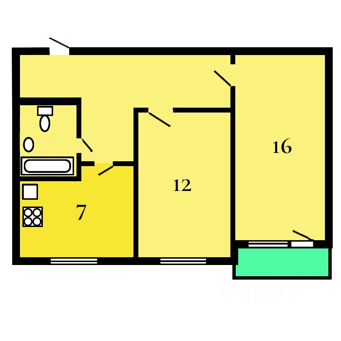 Уютная кухня площадью 7 кв. м,. санузел совмещенный, окна выходят на улицу. В квартире есть лоджия.