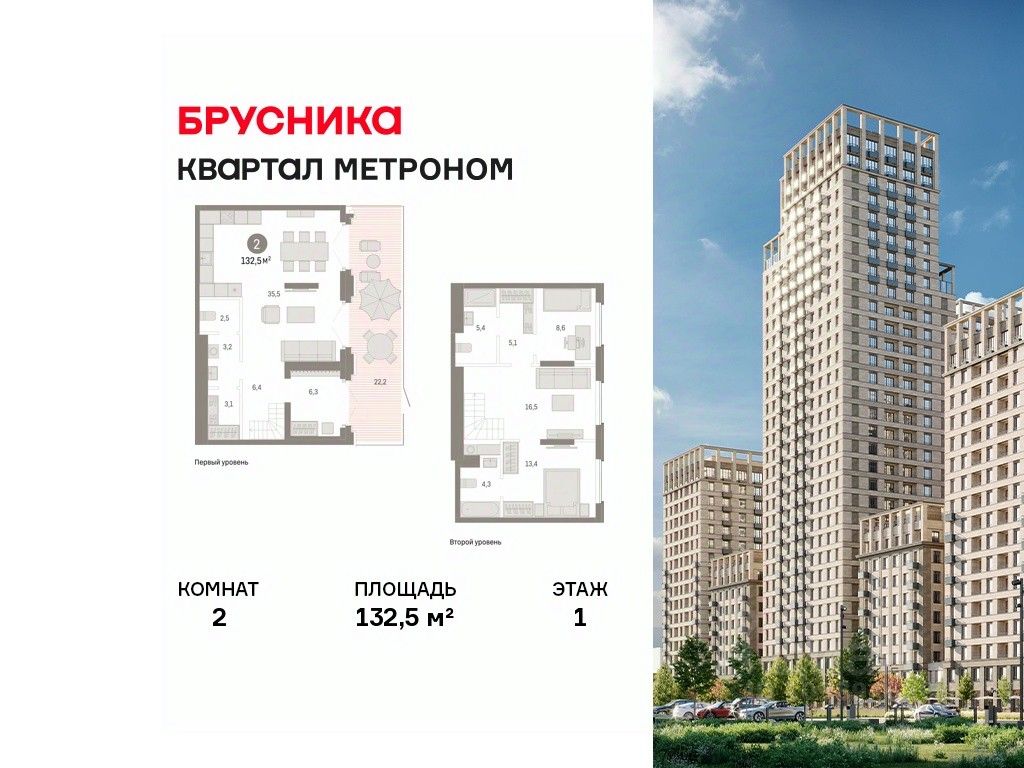 Двухуровневая квартира с кухней-гостиной и двумя спальнями в квартале "Метроном". Особенности планировки: без отделки, вид во двор, второй санузел, двухуровневая, мастер-спальня, отдельный вход, панорамное остекление, постирочная, потолки 3 м и выше, разнесённые спальни, терраса на крыше.