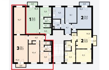 Общая площадь 59 кв. м, жилая — 46.1 кв. м. Из небольшой кухни сделан проем в соседнюю комнату: идеально для семейных обедов и встречи гостей.