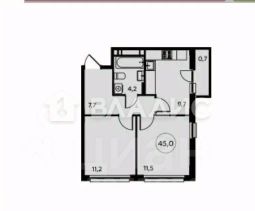 • Общая площадь — 44 м²