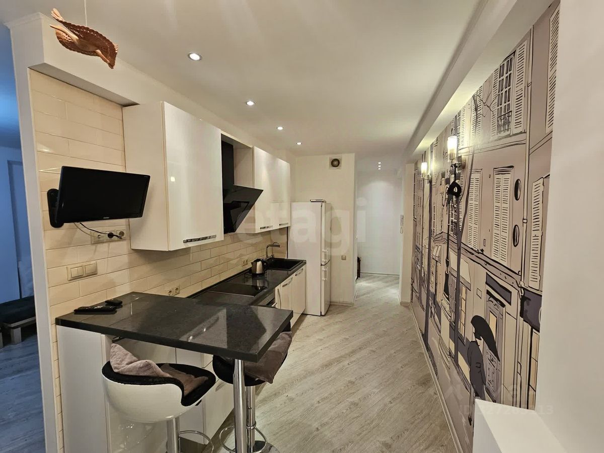 В квартире выполнен качественный свежий ремонт с продуманной эргономикой и вниманием к деталям. Ключевые преимущества включают изолированную планировку с большой гардеробной зоной и расширенной лоджией с выходом из кухни и комнаты. На лоджии обустроен теплый пол и выполнена шумоизоляция, что позволяет использовать пространство круглогодично. В помещении установлены современные системы кондиционирования, во всей квартире широкие подоконники. Ванная комната оснащена системой подогрева пола. Кухонная зона оборудована функциональной барной стойкой.
