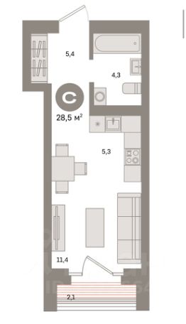 28,5 м²