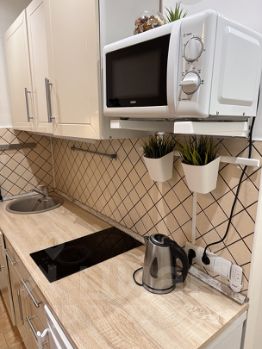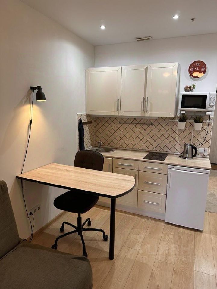 Студия полностью готова к проживанию или сдаче в аренду. Выполнен свежий ремонт, установлена современная бытовая техника. В апартаментах остаётся всё необходимое для комфортного проживания: варочная панель, холодильник, стиральная машина, вытяжка, кондиционер и мебель.