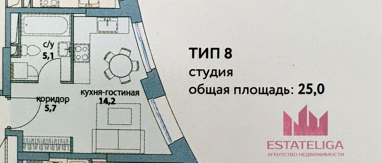 Id 61138. Студия 25 м² в ЖК "Символ", квартал "Вдохновение", корпус 28.