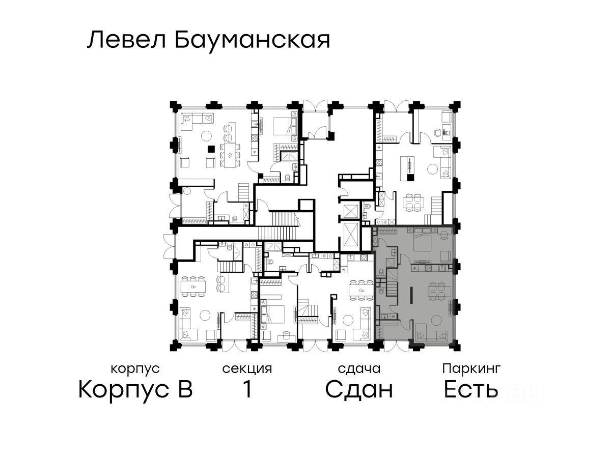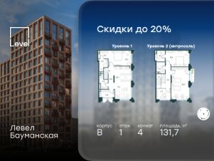 В Басманном районе (ЦАО) продается 4-комнатная квартира площадью 131.70 кв.м без отделки. Квартира расположена на 1 этаже 21-этажного корпуса " B" в жилом комплексе бизнес-класса Левел Бауманская (компания Level Group).