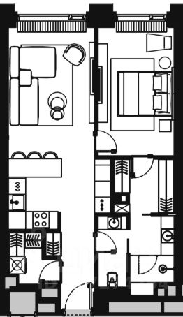 1 спальня с отдельной зоной для гардеробной, кухня-гостиная, разделенный санузел с теплыми полами и отдельная постирочная/гардеробная при входе в апартамент.