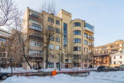 Квартира расположена в 1-м Зачатьевском пер., д. 13. Это жилой кирпичный дом кооператива научные работники (дом преподавателей ВХУТЕМАСа) был построен в 1928 году.
