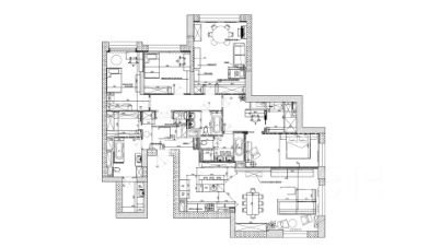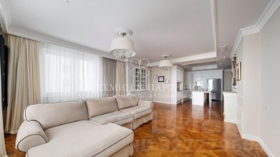 Предельно функциональная, семейная квартира включает гостиную-столовую, кухню, три детские спальни и мастер-блок с ванной комнатой, гардеробной и рабочей зоной, просторную гардеробную для верхней одежды, а также постирочную.