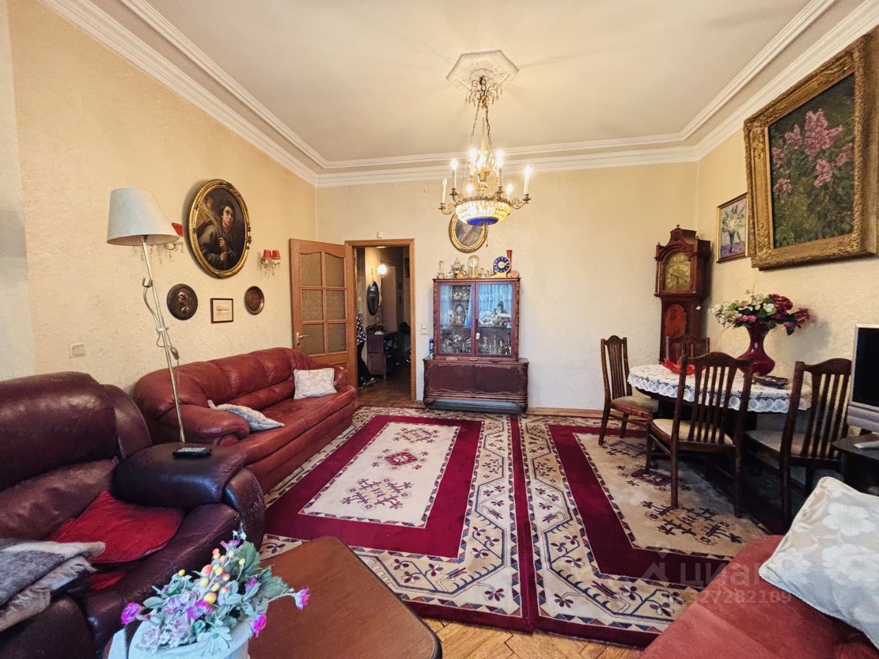 Продается уютная и просторная трехкомнатная квартира в кирпичном доме 1938 года постройки. Общая площадь квартиры составляет 78,1 кв. м, из которых жилая — 50,7 кв. м, а площадь кухни — 9,8 кв. м. Квартира находится на 7 этаже 8-этажного дома. Высокие потолки 3,2 метра. Три жилых комнаты, две из которых выходят на Ленинградский проспект: 22,5 кв.м - с эркером, комната 22,8 кв.м. с балконом; кабинет - 5,4 кв.м и кухня 9,8 кв.м. с остекленным балконом выходят окнами во двор.