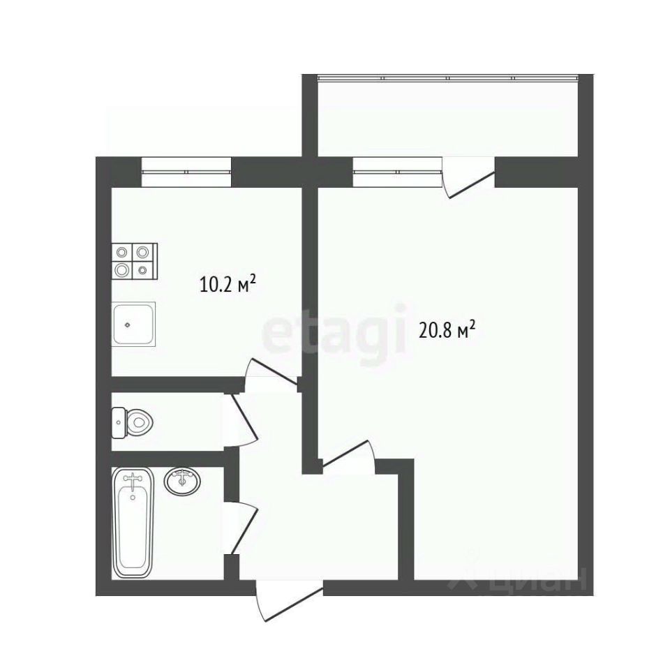 Общая площадь квартиры 40,2 м.кв, жилая — 20 м.кв.