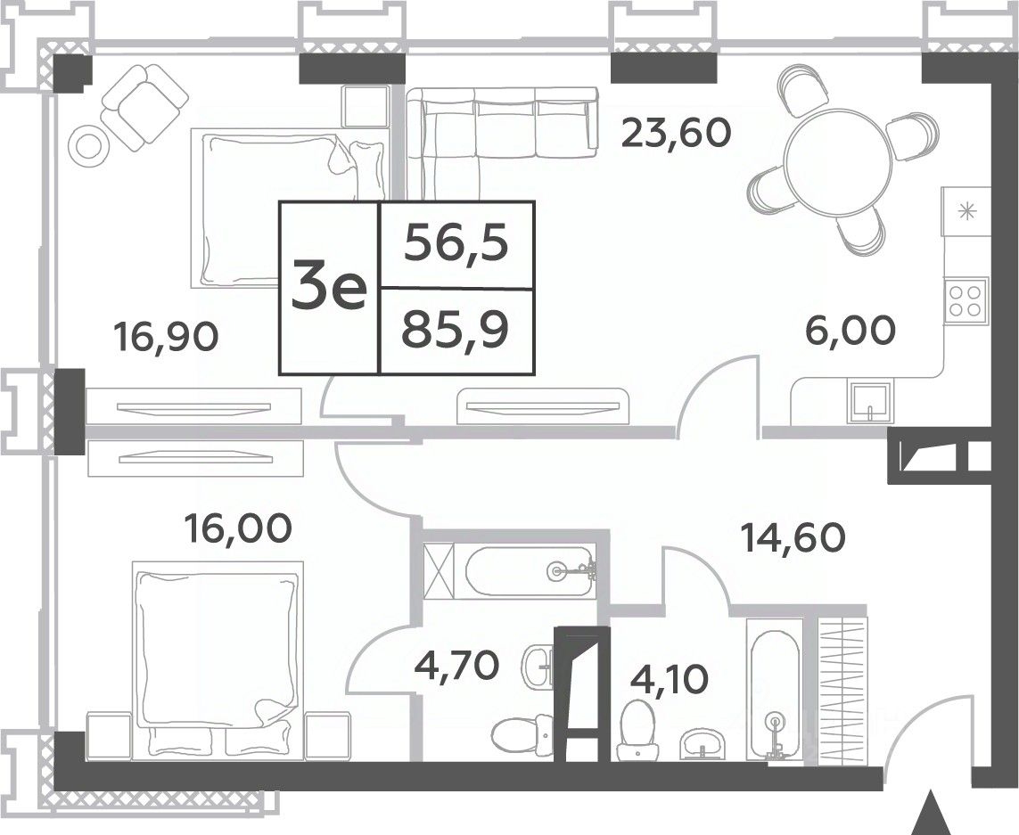 Общая площадь квартиры 84,2 м2. и высота потолков от 3 метров открывают широкие возможности для экспериментов с интерьером. Гардеробная зона у входа в квартиру, просторная кухня-гостиная, мастер-спальня с собтвенной полноценной ванной-комнатой - в этой планировке все продумано до мелочей.