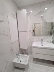 В квартире сделан дизайнерский ремонт с использованием современных и качественных материалов. Сантехника, мебель, бытовая техника - все от ведущих производителей.
