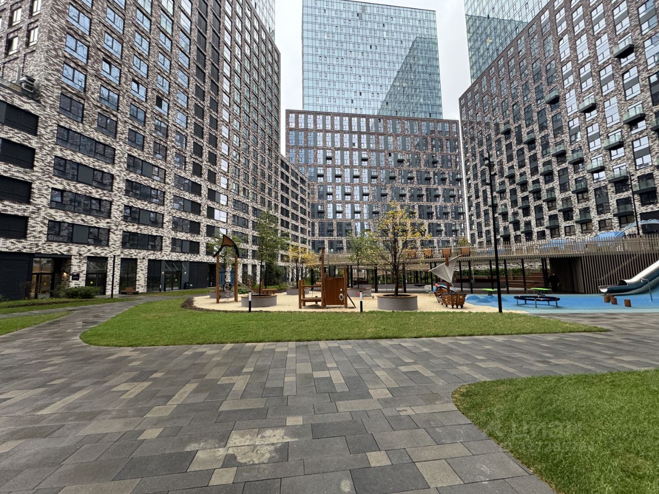 Дизайн двухуровнего лобби выполнили специалисты бюро BergerBureаu. Первый уровень расположен на 1-м этаже, а второй на ровне с двором. Внутренний двор с перепадом высоты до 3,6 метров озеленили клумбами с цветами, кустарниками и большими деревьями. Обустроены великолепные детские игровые площадки с резиновым и песчаным покрытием для детей разного возраста. Предусмотрели и спортивные площадки с оборудованием для воркаута. Организовали пространство для коворкинга со всей офисной оргтехникой для удалённой работы. Рабочие места смогут арендовать жители дома для себя или своих сотрудников.