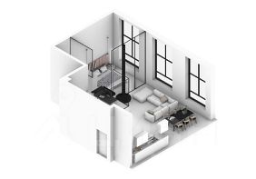 Квартира без отделки. Особенностью данной квартиры является возможность увеличить площадь за счет высоких потолков. Квартира имеет площадь по полу 68 квадратных метров и может быть увеличена за счёт второго этажа - антресоли на 25 35 м, а итоговая площадь квартиры может составить 90 100 квадратных метров. На втором этаже удобно будет разместить кабинет, детскую и туалетную комнату.